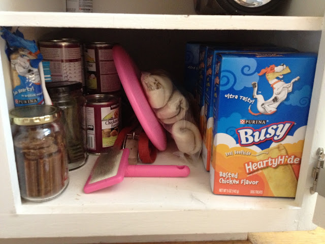 On a totally separate note, we had NO idea we already had two boxes of heartyhides when we bought two more at Target on Friday. That's how cluttered this cabinet was.